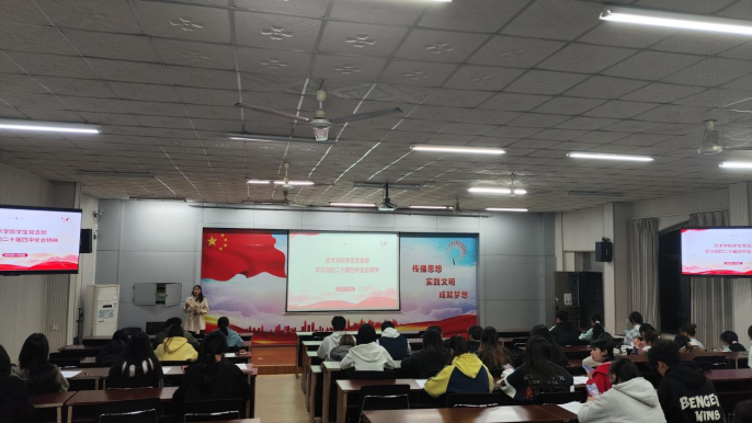 新闻网消息(文/艺术学院邓丽图/艺术学院 刘茜茜)为推动党的二十届四中全会精神在青年群体中落地生根,加强入党积极分子、青马班学员思想教育,筑牢理想信念根基,11月4日傍晚,艺术学院分党校联合学院青马班在社湾校区思贤楼101教室举办入党积极分子培训班第三次主题党课暨青马工程培训,由学院学生党支部书记邓丽主讲,全体入党积极分子参加学习。