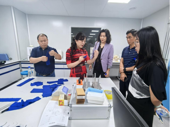 白莹科技集团董事长洪益清接待了校方一行,首先介绍了企业的发展历程:从1995年创办白云手套厂开始,逐步扩展至劳保用品、特种纸生产领域,2020年成立集团公司后,联合上汽通用五菱成立宝菱康医疗器械公司,并推进现代服装产业园三期建设。调研团队实地参观了生产车间、检测中心和研发实验室,并与在企业工作的汽车工程学院2016届毕业生交流,了解他们的工作现状。