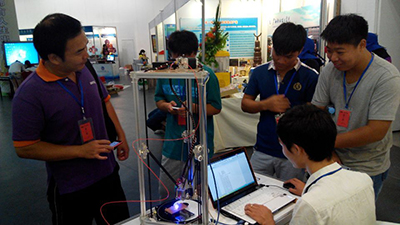“激光雕刻与快速成型机”是电子信息工程学院学生发明的科技创新原创作品,由电子信息工程学院蒙飚、杨贤军两位老师指导,电子信息工程学院三名学生张晋华、贝晓娜、李燕等组成的创新团队完成。作品具备通过3D打印技术进行快速成型功能,在3D打印技术基础上,通过搭载激光管、普通水性笔而实现激光雕刻打印、绘画写字的功能。