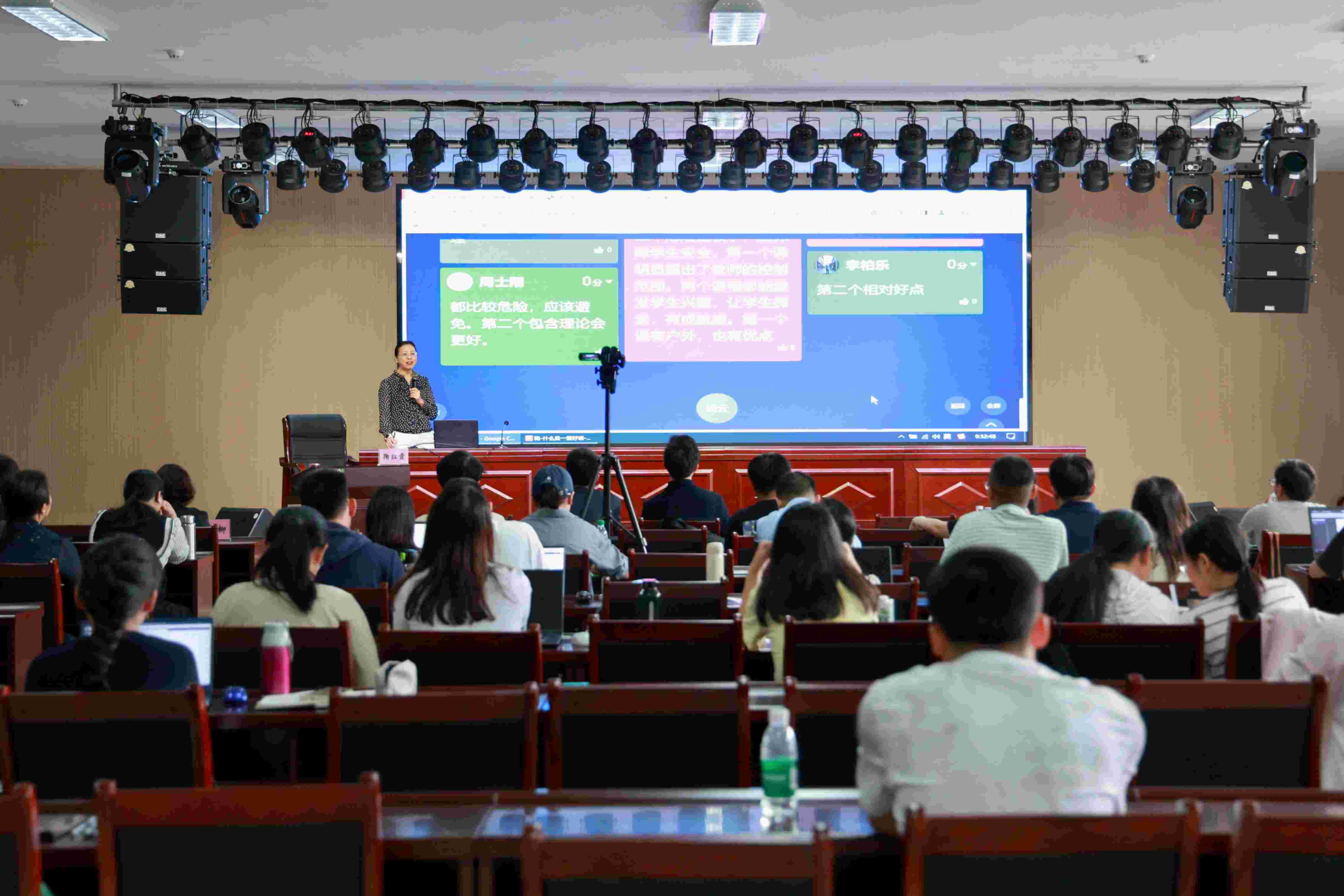 上午,鞠红霞以《什么是一堂好课》为题授课,培训伊始,她巧妙地运用了一段影视片段作案例,提出问题:什么是一堂好课?在讲座中,鞠红霞采用了分组开展互动游戏的形式,进一步激发了新教师们的参与热情。她邀请大家共同讨论并分享自己的想法,引导大家积极思考影响一堂好课的主要因素是什么,怎么样做一个好老师,以及如何在职业大学里做一个好老师等。在她的积极带领下,多名教师主动上台,分享了自己心目中的好老师形象。最后,鞠红霞结合自身的工作经历,分享了自己在教育道路上的成长历程和心得体会。她强调教师不仅要具备扎实的教学能力,还要不断提升自己的科研能力和实践能力,以更好地适应教育发展的需要。同时,她还鼓励新教师们要扬长避短,科学规划自己的职业生涯规划,不断追求进步和成长。