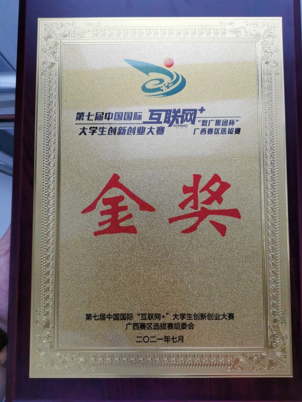 图4 第七届全国大学生创新创业大赛广西赛区金奖