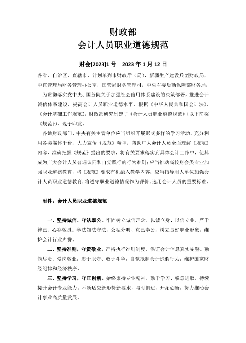 会计人员职业道德规范