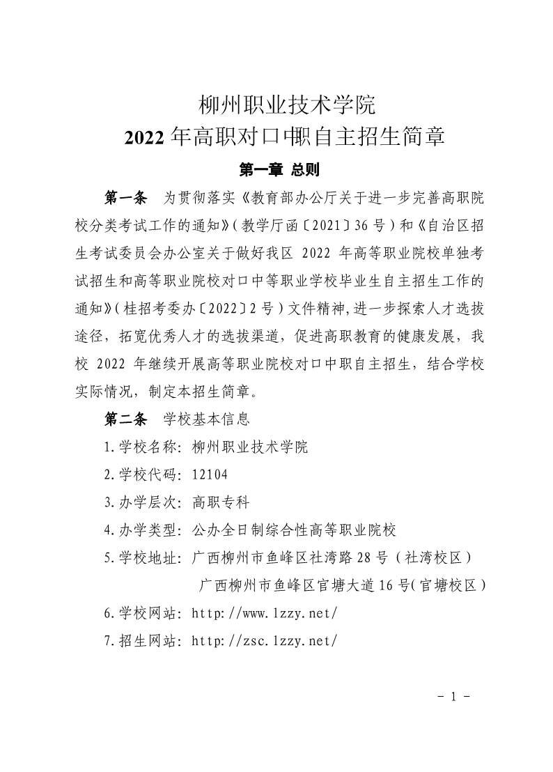 柳州职业技术学院2022年高职对口中职自主招生招生简章