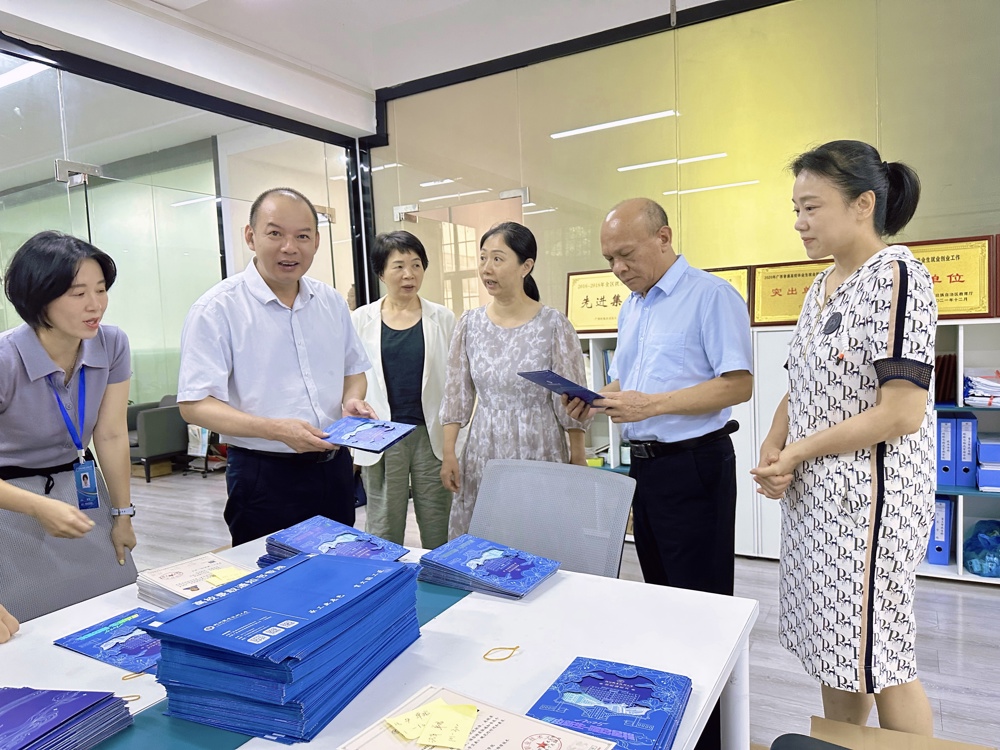 甘金明(左二)、李善文(右二)到招生就业处调研普高录取情况