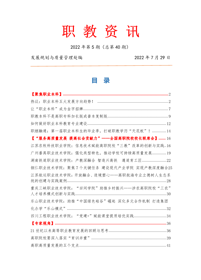 2022 年第 5 期《职教资讯》(总第 40 期)