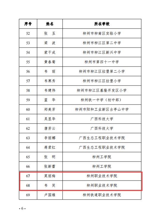 喜讯:bb贝博马克思主义学院莫丽梅、韦笑2位老师被评为柳州市“最美思政课教师 来源: 发布时间:2024-06-05 10:23:46 浏览次数: 次 【字体:小 大】 新闻网消息(文、图/人事处 杨婉珍)近日,从柳州市教育局《关于公布柳州市“最美思政课教师”评选结果的通知》(柳教思政〔2024〕33号)文件获悉,bb贝博马克思主义学院莫丽梅、韦笑2位老师被评为柳州市“最美思政课教师”。文件截图部门网站审核:人事处(党委教师工作部、教职工发展中心)韩霄 终审:教职工发展中心 分享到: 【打印正文】